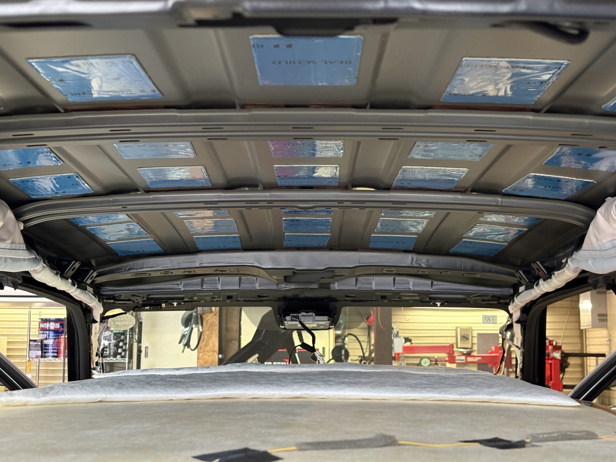 ルーフには優れた制振性能を持つレアルシルトを適所に貼り付け。