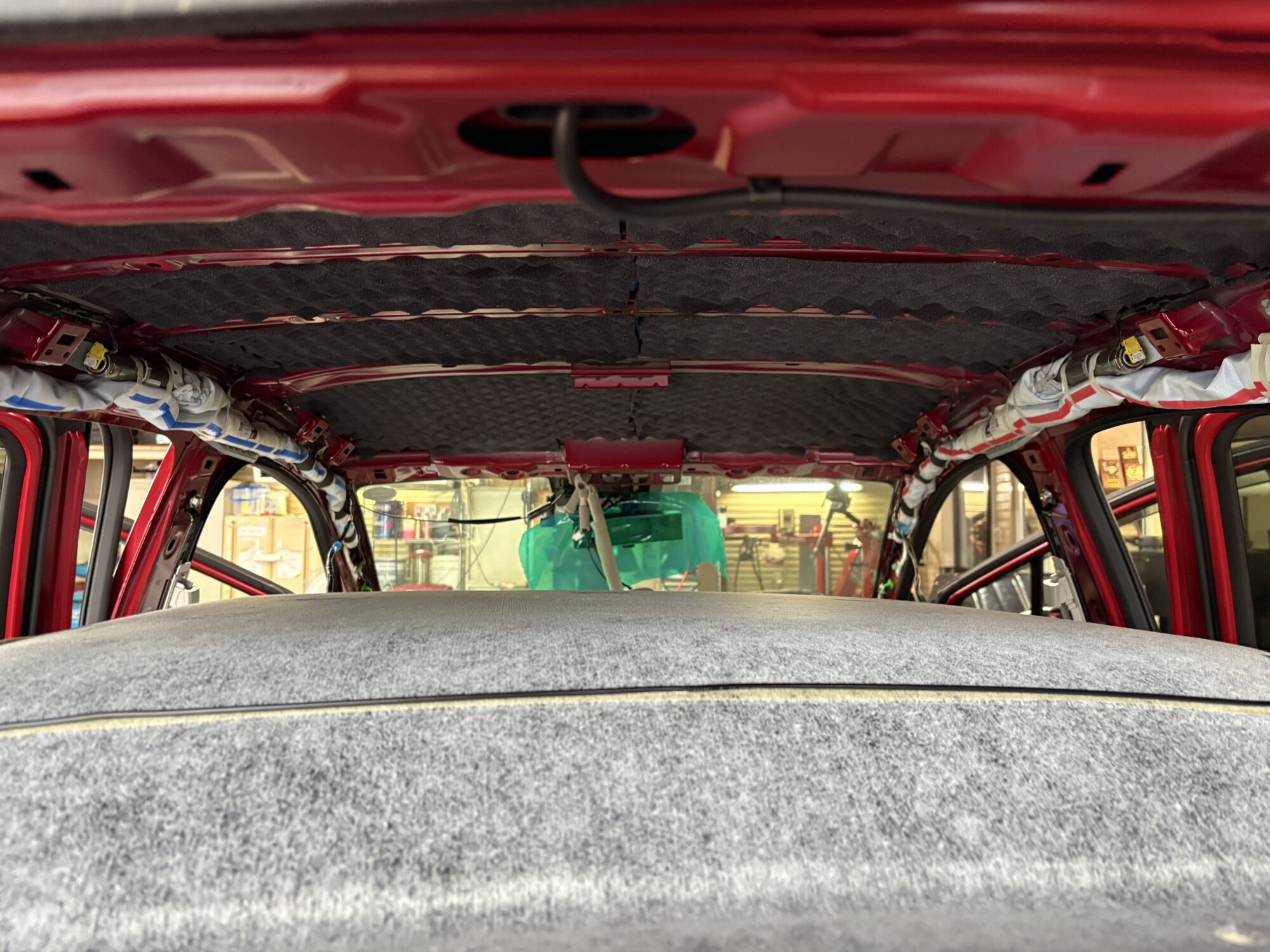 ルーフは重量増を抑えるため、適量の制振材と軽量吸音材で仕上げます。