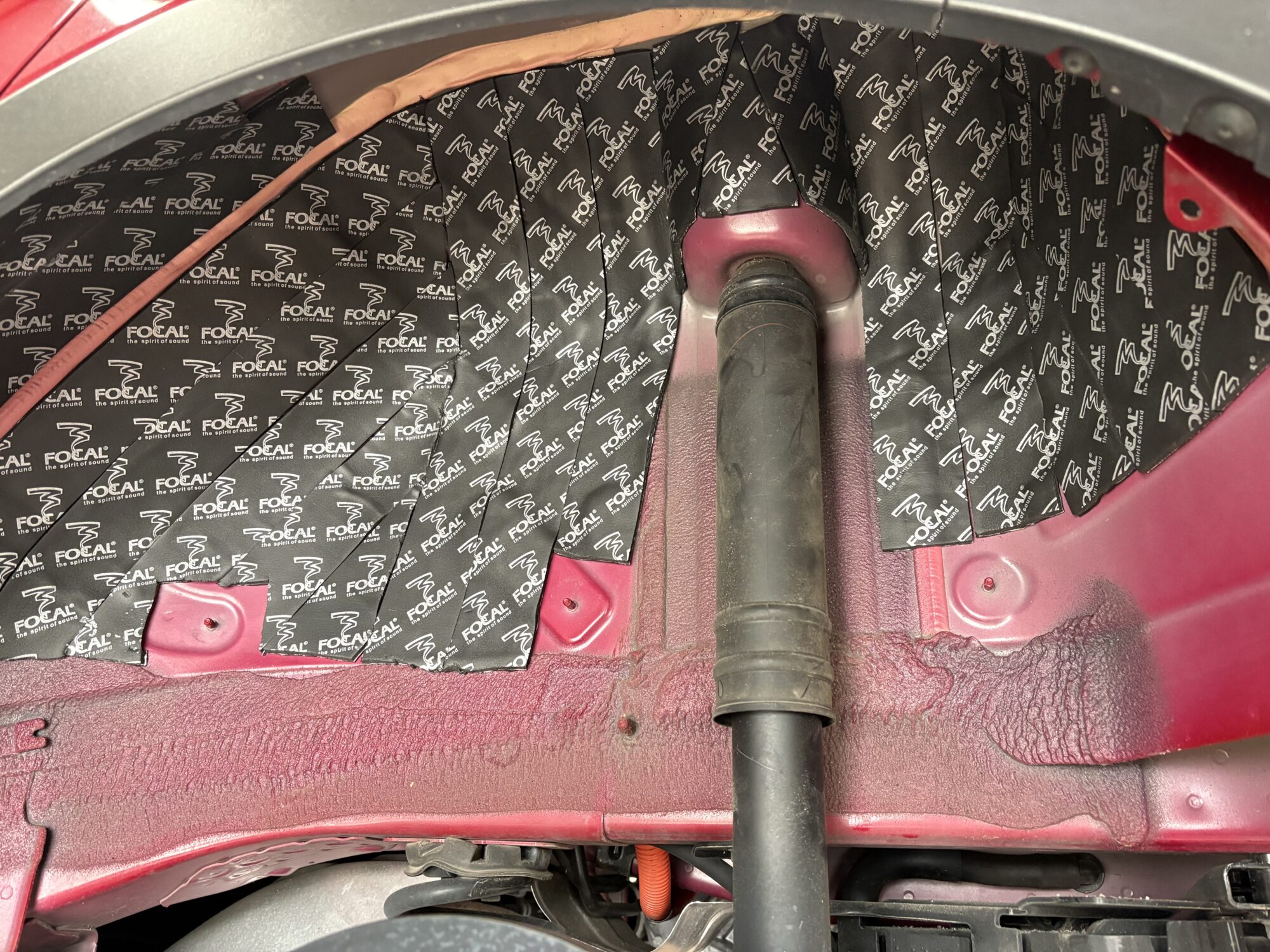 ロードノイズに効果抜群なタイヤハウスのデッドニングもFOCAL BAMで仕上げております。