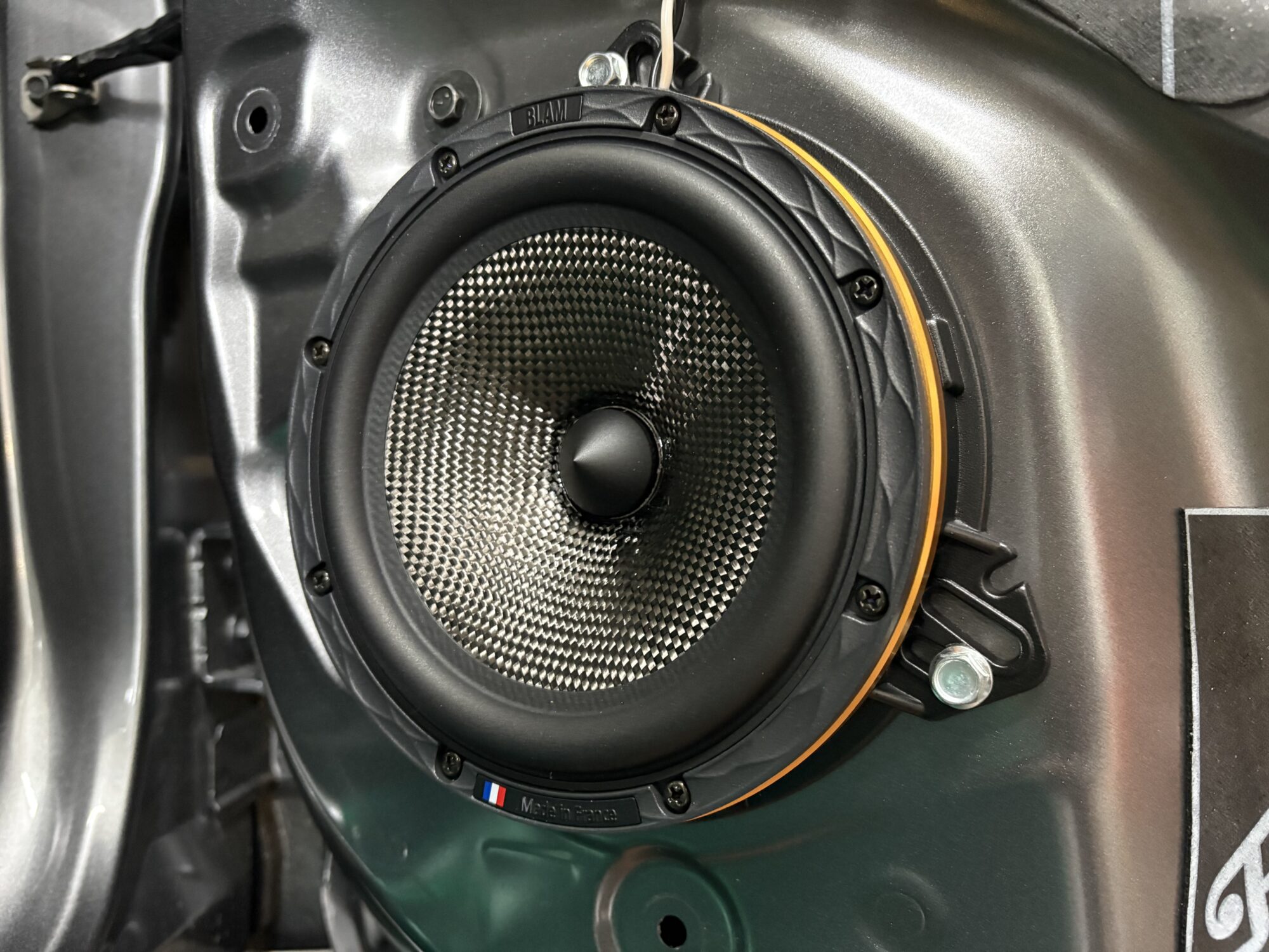 スピーカーはフランスのBLAMで構築。繊細で超高域までスムース再生するフラッグシップツイーターはAピラーにカスタムインストール。